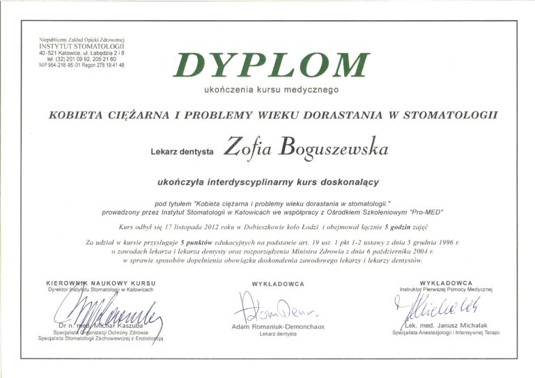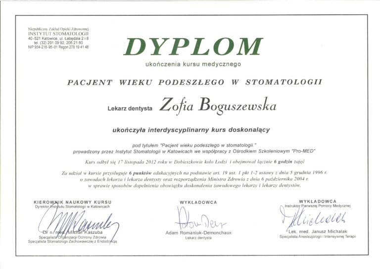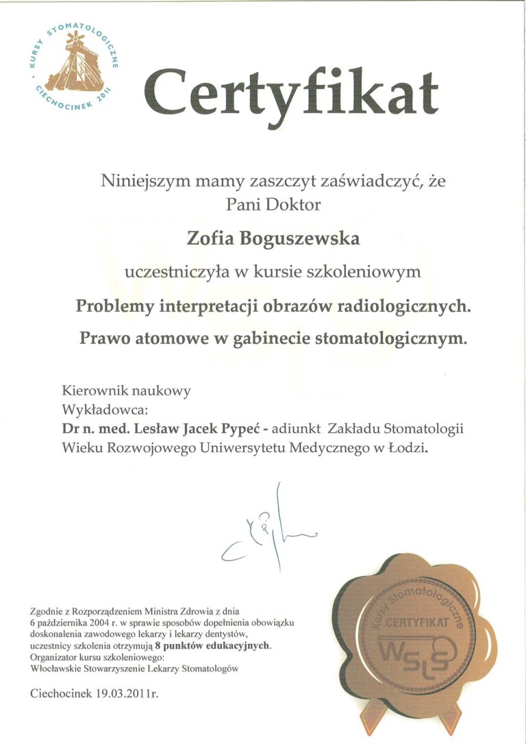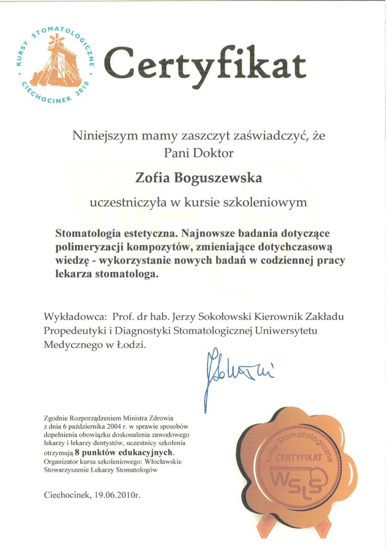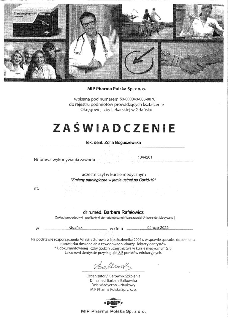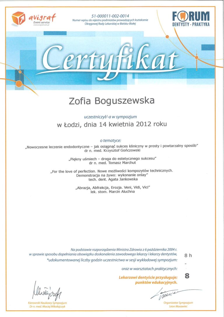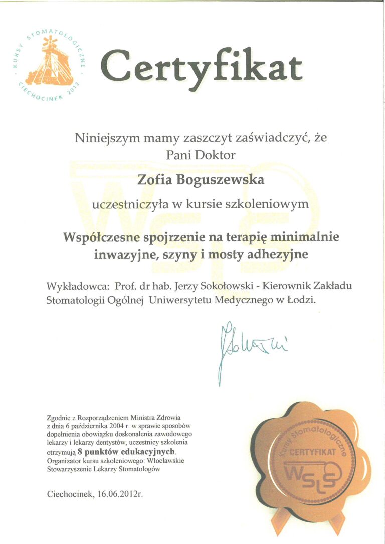 W Boguszewska Dental wszyscy nasi lekarze posiadają specjalistyczne wykształcenie medyczne oraz wieloletnie doświadczenie, co pozwala nam oferować zabiegi na najwyższym poziomie. Każdego roku uczestniczymy w szkoleniach uzupełniających, aby stale podnosić nasze kompetencje i zapewniać najwyższą jakość usług stomatologicznych.