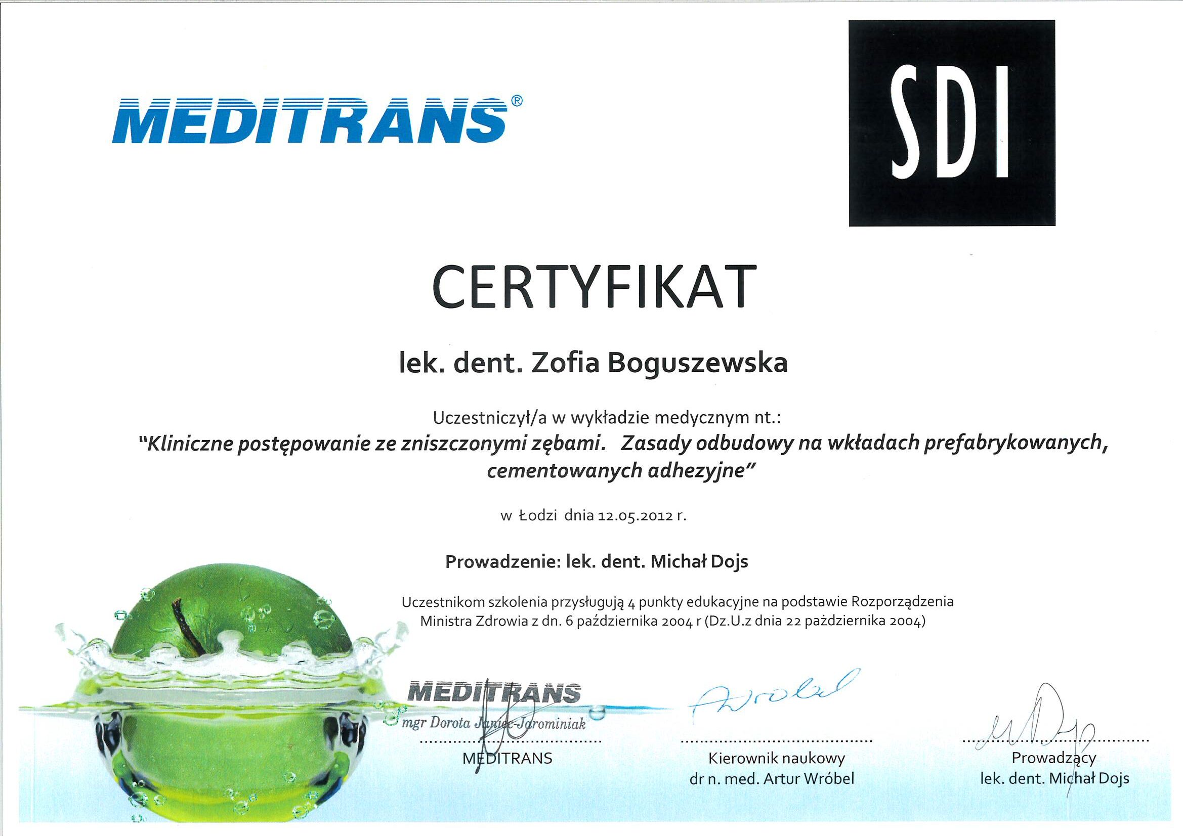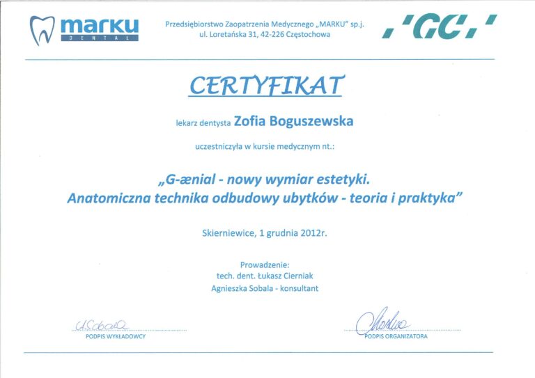 Korzystam z usług dr Boguszewskiej od kilkunastu lat. Jestem bardzo zadowolony. Jest jak zawsze bardzo miła, z odpowiednim podejściem do pacjenta. Polecam wszystkim.Super Stomatolog.